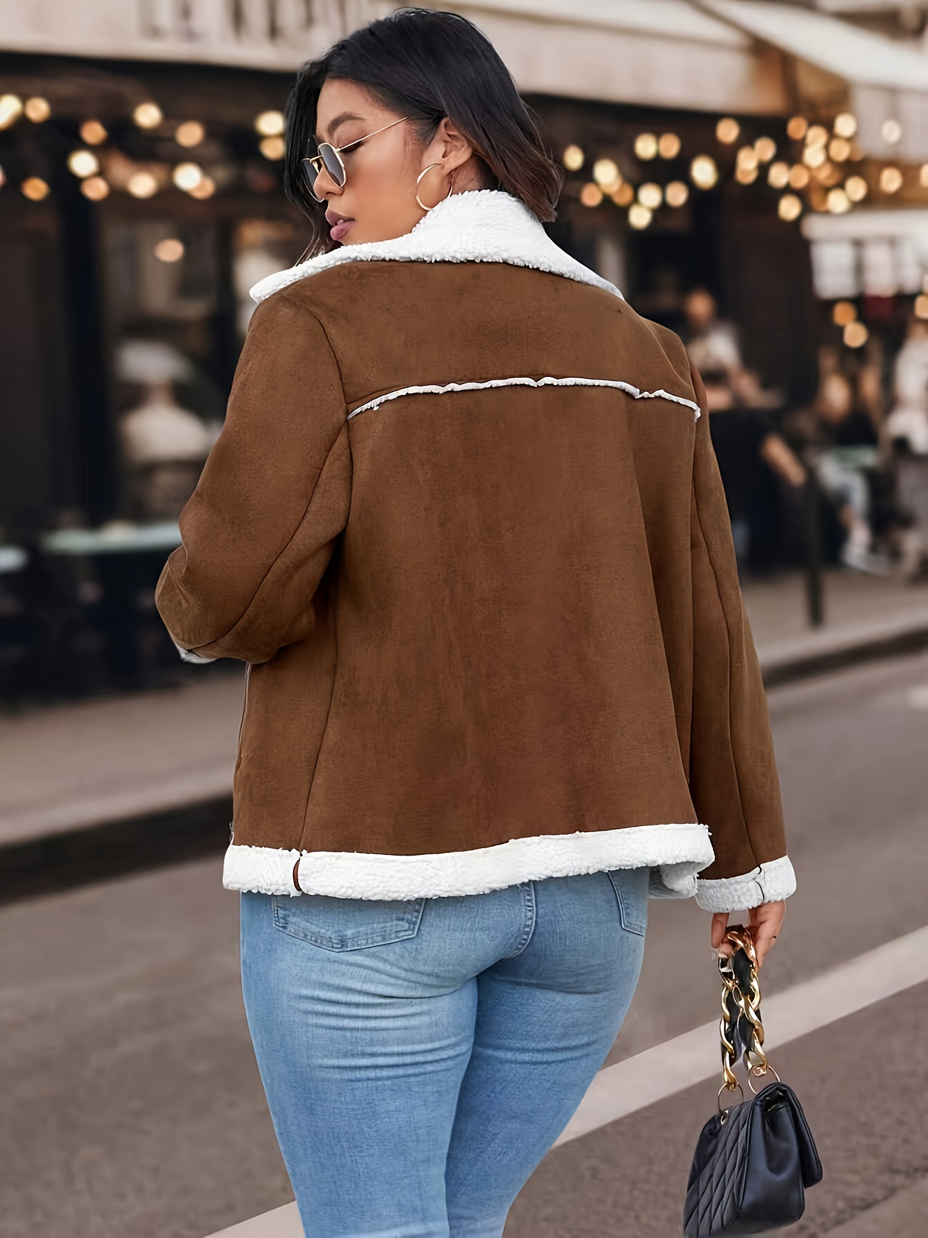Plus Size Women'S Color Block Lapel Collar Zip-Up Jacket - Warm Fleece-Lined Casual Outerwear with Front Pockets, Solid Color Design for Fall/Winter, Cozy Layering Piece, Winter Jacket, Fall Fashion, Sporty Style, Durable Fabric