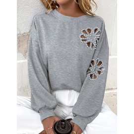 Plus Size, Cross-border Fashion New Solid Color Hollow Beaded Oversized Sweatshirt