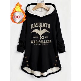 Plus Size - Women'S Plus Size Gothic Fantasy Hooded Coat - Heavyweight Winter Jacket with BSG Winged Dragon Rider Lettering, Lined Hood & Button Closure