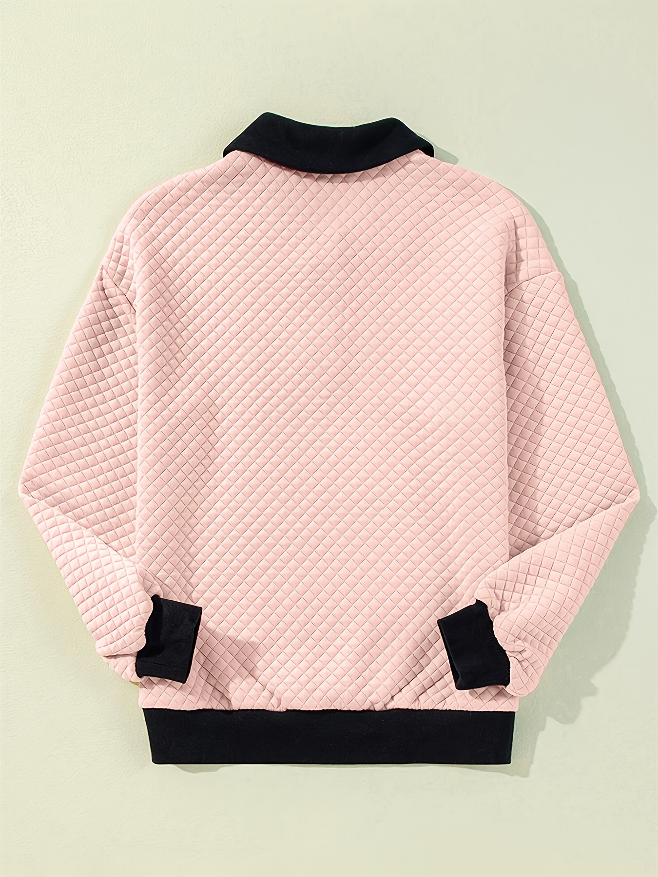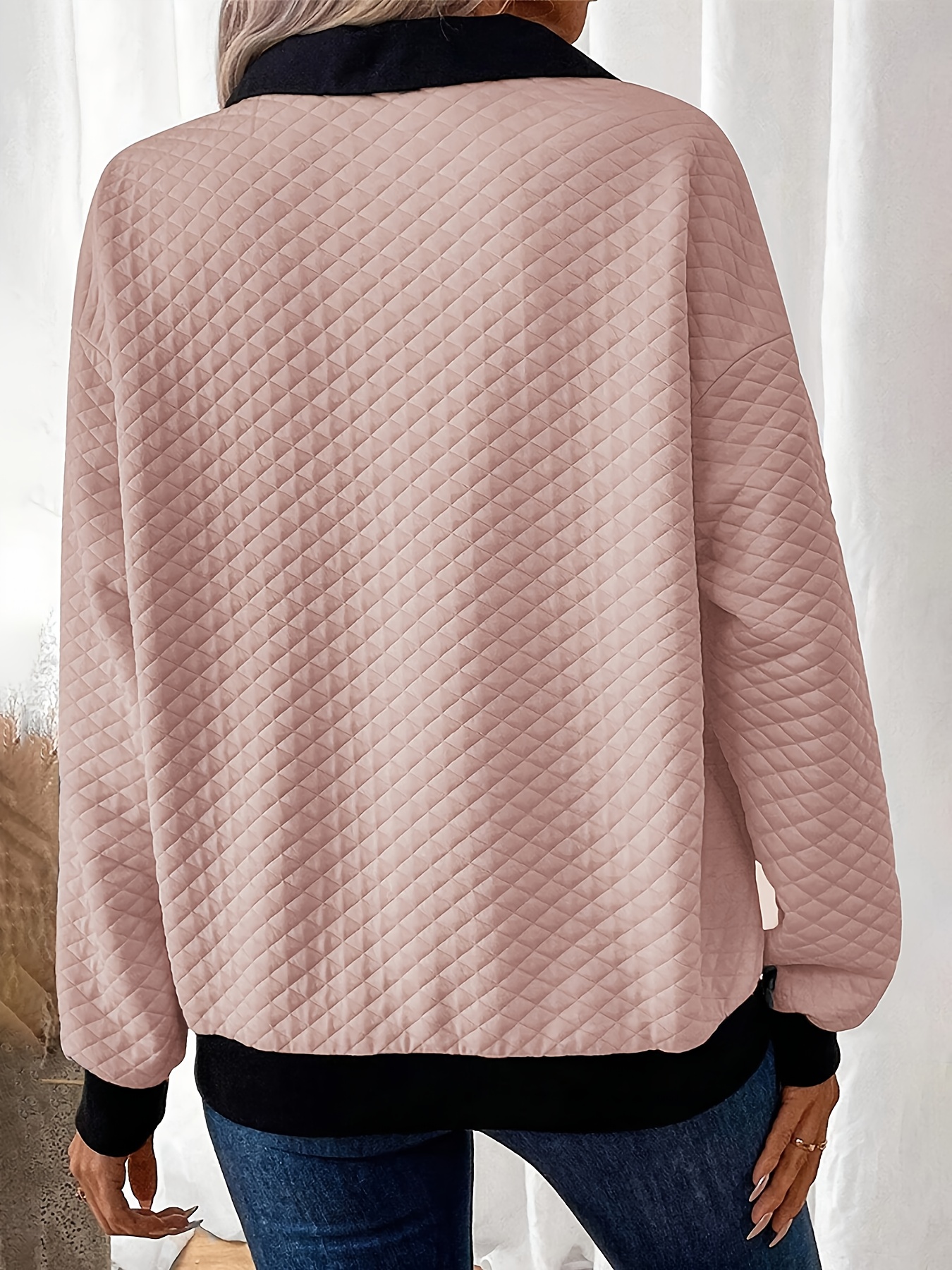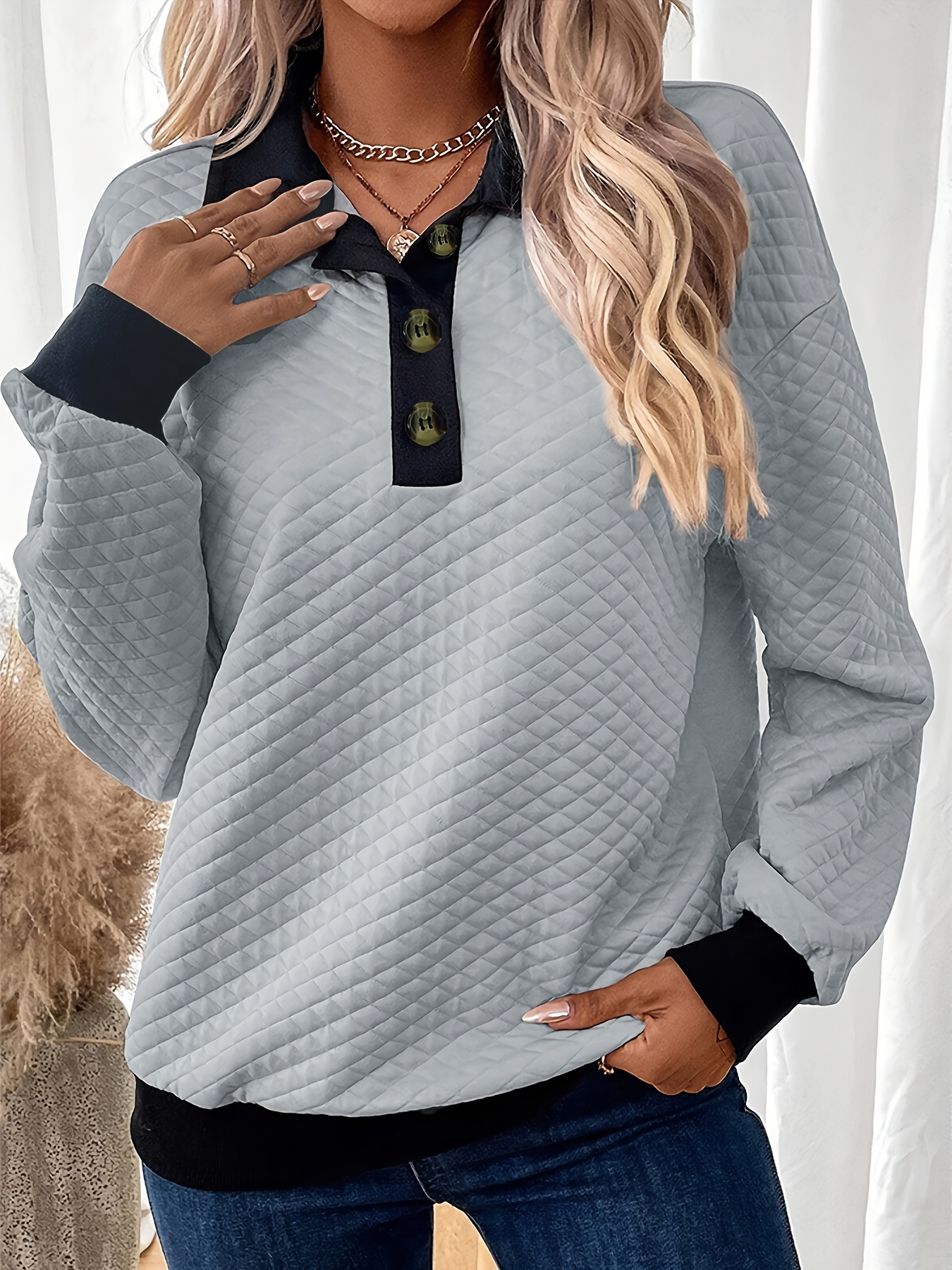 Plus Size - Plus Size Women'S Textured Button-Up Long Sleeve Sweatshirt - Relaxed Fit, Contrast Trim, Medium Stretch, All-Season Casual Pullover with Wide Collar, Machine Washable, Cute Sweatshirts, Versatile Clothing, Chic Style, Mediumstretch Fabric, Durable Clothing