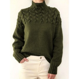 Plus Size - Women'S Plus Size Thick Sweater - Elegant High Neck Batwing Sleeves, Long Sleeve Winter Warmth, Solid Color (PurpleNavyBrown), Non-Stretch Fabric, Loose Fit for Casual & Formal Outfits - Cozy Fall & Winter Sweater for Women