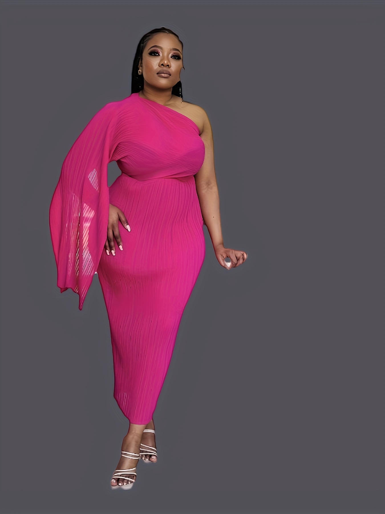 Elegant One-Shoulder Ruched Midi Party Dress for Women - Sleeveless, Asymmetrical Hem, Solid Color, Stretch Fabric, Non-Sheer Polyester - Perfect for Summer Events