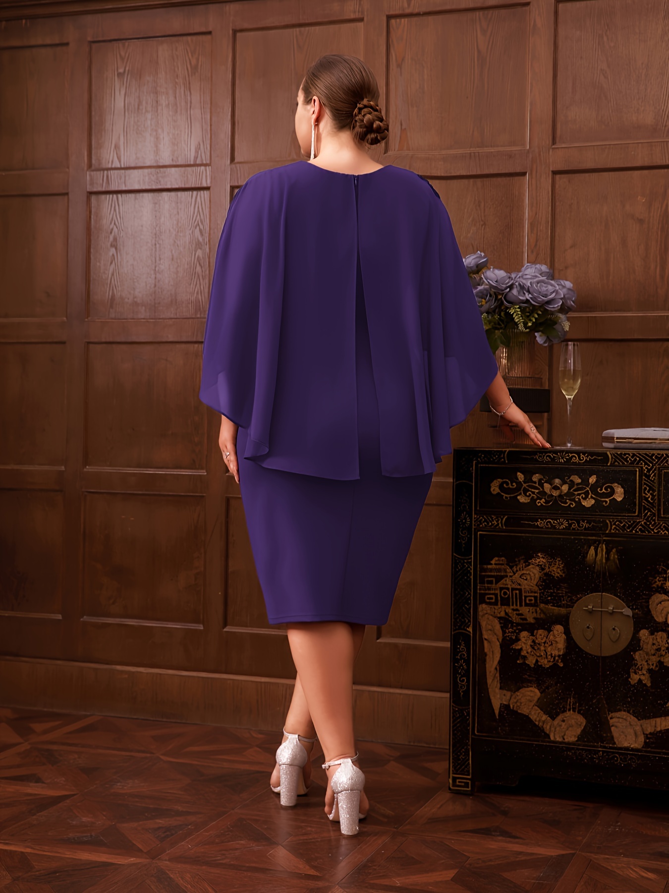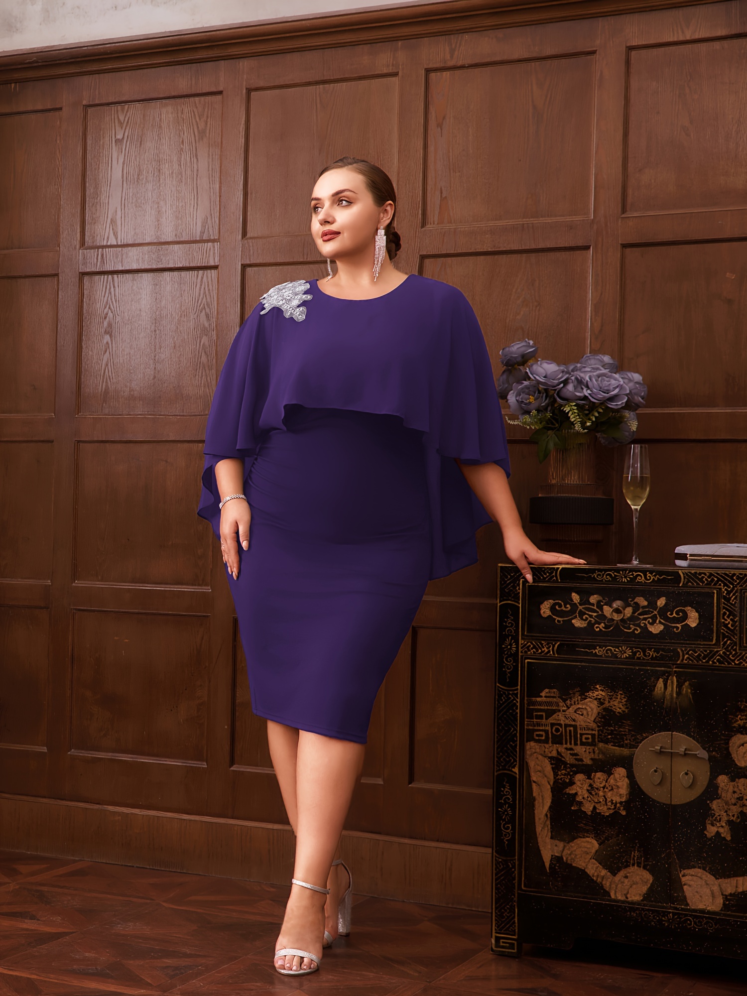 Women Plus Size Chiffon Overlay Decorated Party Dress Crew Neck Bodycon Dress
