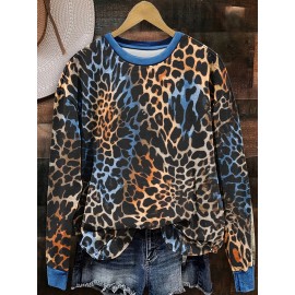 Plus Size, Women's Leopard Print Sweatshirt - Bold Black, Relaxed Fit Long Sleeve Pullover Sweater, Machine Washable Everyday Casual Outfit Essential for Women, Seasonal Fashion, Trendy Design, Soft Material, Printed Sweater, Adults