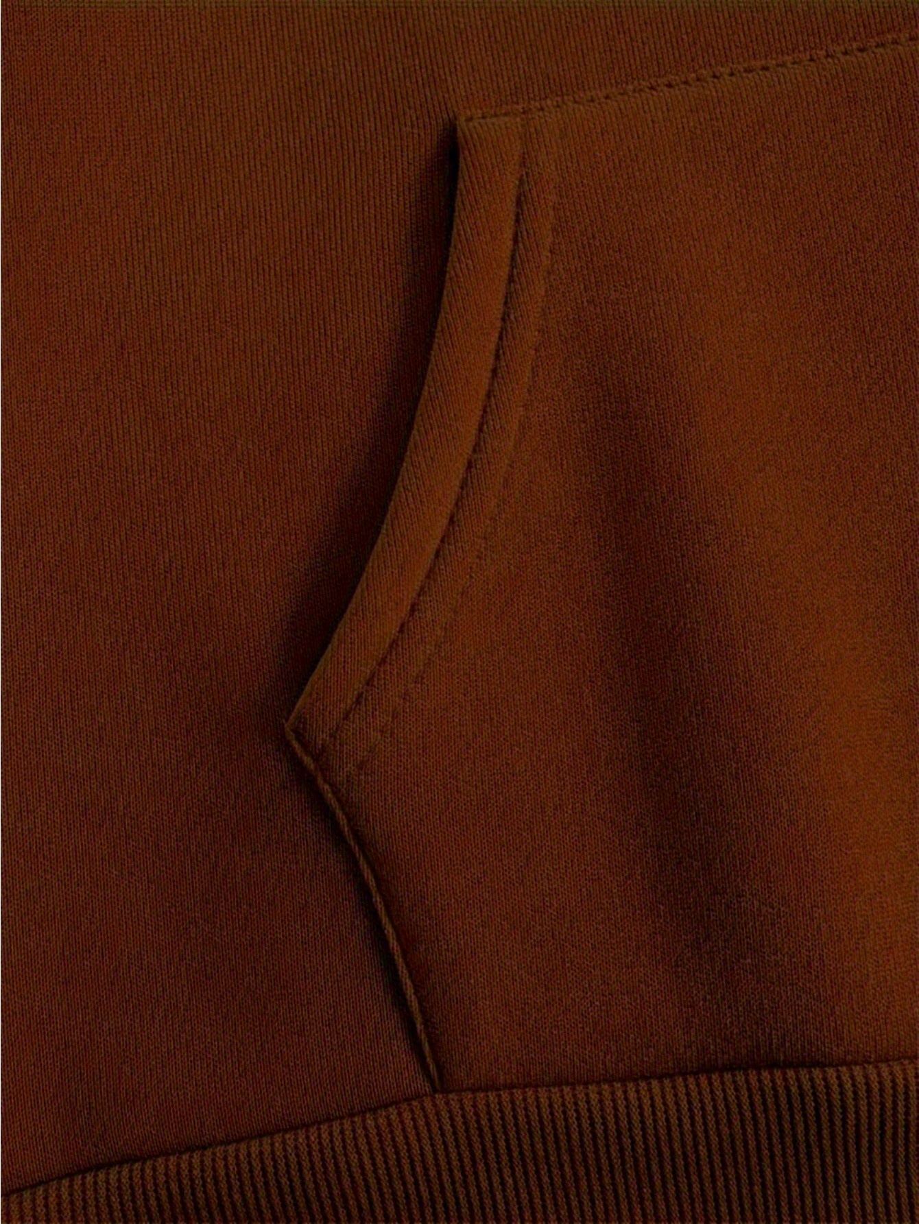 [Floral Print Hoodie] Women's Plus Size Floral Print Hoodie - Cozy Long Sleeve Pullover with Pockets, Soft Casual Wear, Brown with Red Roses and Green Leaves Design, Allseason Hoodie | Stylish Casualwear | Comfortable Fabri