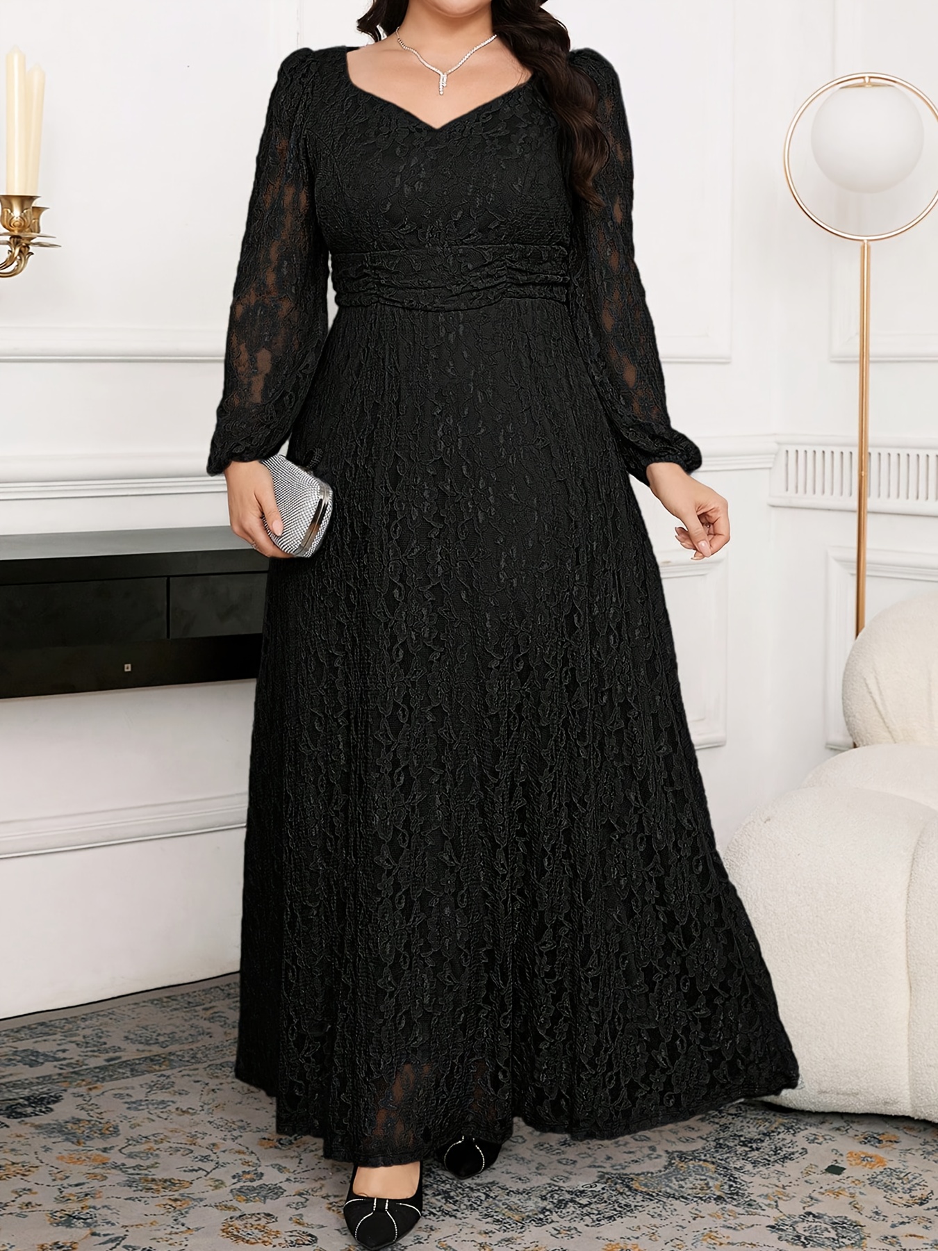 Plus Size, Plus Size Women's Dress with Lace-Up Waist for Look, Elegant Business Deep V-Neck Light Gray Autumn Winter Wedding Banquet Dress